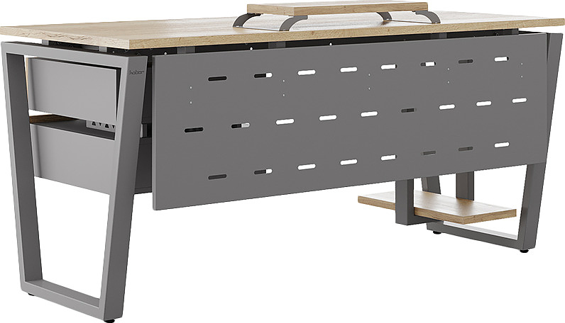 Офисный стол КОБОР OTR-140/70 aluminum/natural используется в офисных помещениях и кабинетах руководителей. Модель оснащена опорами в форме обратной трапеции. Материал столешницы - прочный ЛДСП толщиной 25 мм, усиленная снизу металлическим каркасом, материал опор - окрашенный металл.