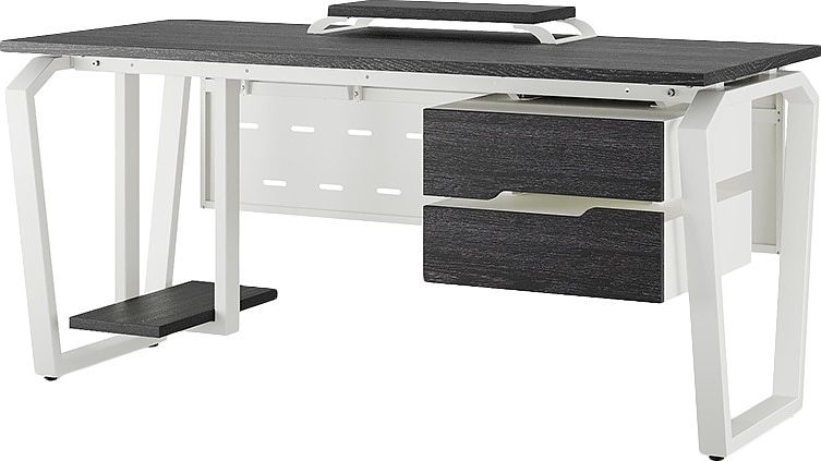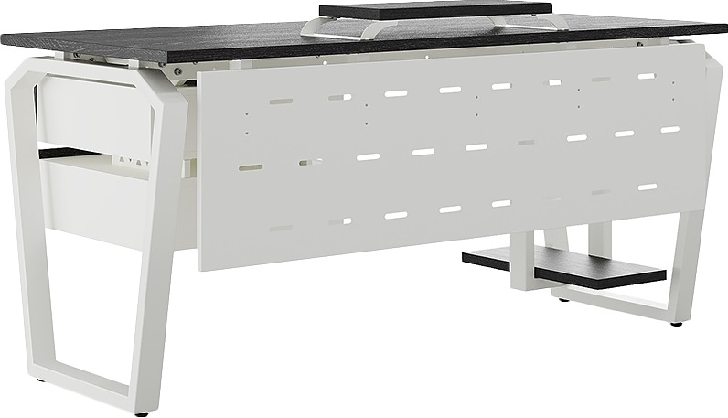 Офисный стол КОБОР TB-120/60 white/wood используется в офисных помещениях и кабинетах руководителей. Конструкция модели включает опоры, выполненные в виде перевернутой трапеции со скошенными верхними углами. Материал столешницы - прочный ЛДСП толщиной 25 мм, усиленная снизу металлическим каркасом, материал опор - окрашенный металл.