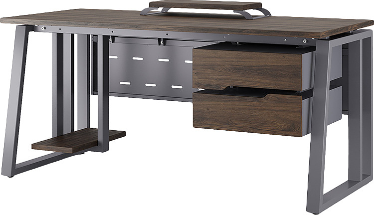 Офисный стол КОБОР TS2-120/60 graphite/charlston используется в офисных помещениях и кабинетах руководителей. Модель оснащена опорами в форме наклонной трапеции с усиленными вертикальными балками. Материал столешницы - прочный ЛДСП толщиной 25 мм, усиленная снизу металлическим каркасом, материал опор - окрашенный металл.