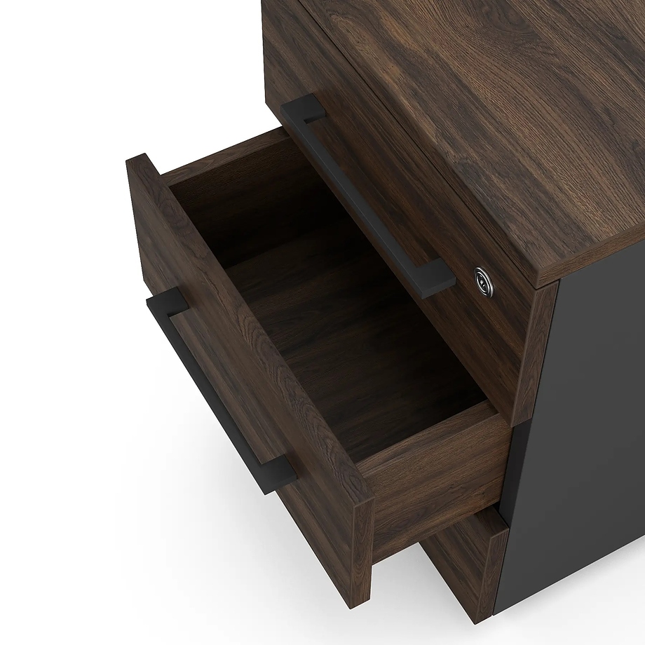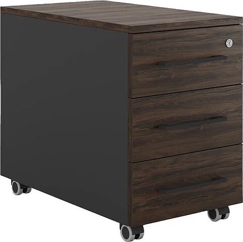 Мобильная тумба Кобор TМ3-40/80 black/charlston предназначена для хранения документов, канцелярских принадлежностей и других мелочей в офисных и коммерческих помещениях, а также в учебных заведениях. Тумба станет удобным дополнением рабочего пространства, и её можно разместить как под столом, так и рядом с ним, адаптируя пространство под свои задачи. Модель оснащена 3 выдвижными ящиками и 4 колесами. Материал корпуса - прочный ЛДСП толщиной 16 мм, материал столешницы и ящиков - прочный ЛДСП толщиной 25 мм, материал задней стенки - окрашенный металл.