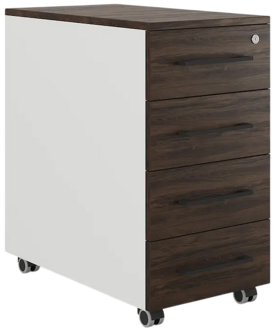 Мобильная тумба Кобор TМ4-40/60 white/charlston предназначена для хранения документов, канцелярских принадлежностей и других мелочей в офисных и коммерческих помещениях, а также в учебных заведениях. Тумба станет удобным дополнением рабочего пространства, и её можно разместить как под столом, так и рядом с ним, адаптируя пространство под свои задачи. Модель оснащена 3 выдвижными ящиками и 4 колесами. Материал корпуса - прочный ЛДСП толщиной 16 мм, материал столешницы и ящиков - прочный ЛДСП толщиной 25 мм, материал задней стенки - окрашенный металл.