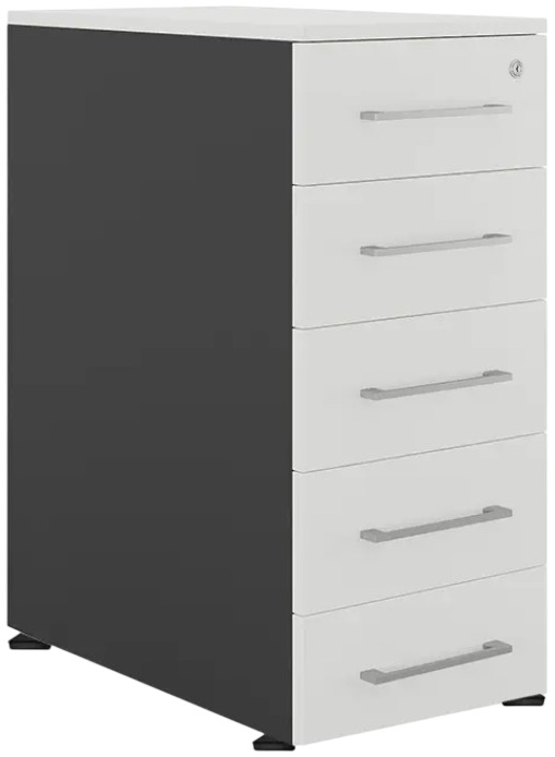 Приставная тумба Кобор TS5-40/50 black/premium предназначена для хранения документов, канцелярских принадлежностей и других мелочей в офисных и коммерческих помещениях, а также в учебных заведениях. Тумба станет удобным дополнением рабочего пространства, и её можно разместить как под столом, так и рядом с ним, адаптируя пространство под свои задачи. Модель оснащена 5 выдвижными ящиками и 4 регулируемыми по высоте опорами. Материал корпуса - прочный ЛДСП толщиной 16 мм, материал столешницы и ящиков - прочный ЛДСП толщиной 25 мм, материал задней стенки - окрашенный металл.