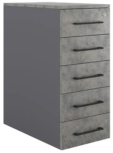 Приставная тумба Кобор TS5-40/60 graphite/chicago предназначена для хранения документов, канцелярских принадлежностей и других мелочей в офисных и коммерческих помещениях, а также в учебных заведениях. Тумба станет удобным дополнением рабочего пространства, и её можно разместить как под столом, так и рядом с ним, адаптируя пространство под свои задачи. Модель оснащена 5 выдвижными ящиками и 4 регулируемыми по высоте опорами. Материал корпуса - прочный ЛДСП толщиной 16 мм, материал столешницы и ящиков - прочный ЛДСП толщиной 25 мм, материал задней стенки - окрашенный металл.