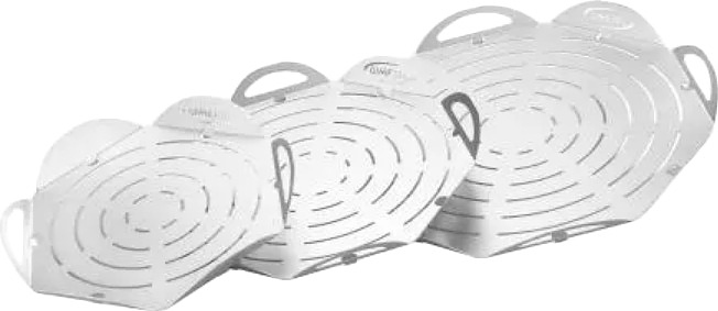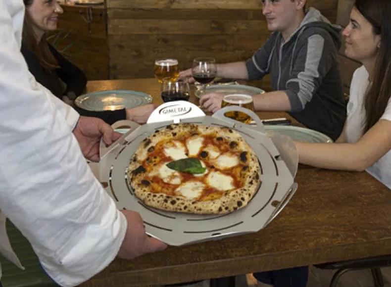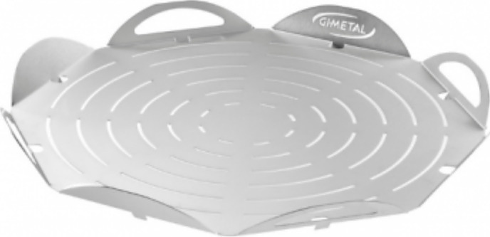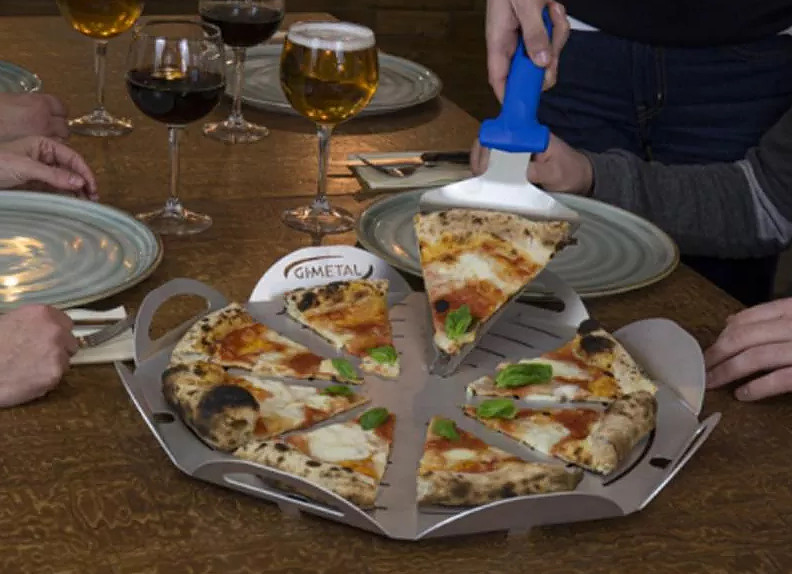Поднос для пиццы GiMetal VPFT41 предназначается для выкладки, подачи, нарезания пиццы и прочих изделий на предприятиях общественного питания, торговли, пищевых производствах и в домашних условиях. Основание подноса - правильный 8-угольник, 8 бортиков в виде округлых лепестков. Материал изготовления - высококачественный алюминий, перфорация выполнена методом лазерной проточки.