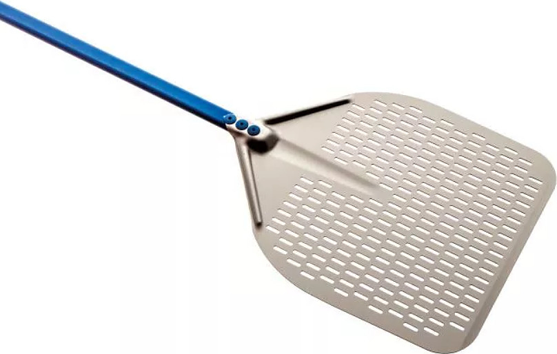 Лопатка GiMetal A-37RF/60 серии Azzurra предназначается для загрузки, выгрузки и поворачивания пиццы и других хлебобулочных изделий в процессе приготовления на предприятиях общественного питания, торговли, пищевых производствах и в домашних условиях. Головка прямоугольной формы. Лопатка оснащена длинной рукояткой. Материал головки - высококачественный анодированный алюминий, материал рукоятки и заклепок - анодированный алюминий с покрытием лазурно-голубого цвета, перфорация выполнена методом лазерной проточки.
