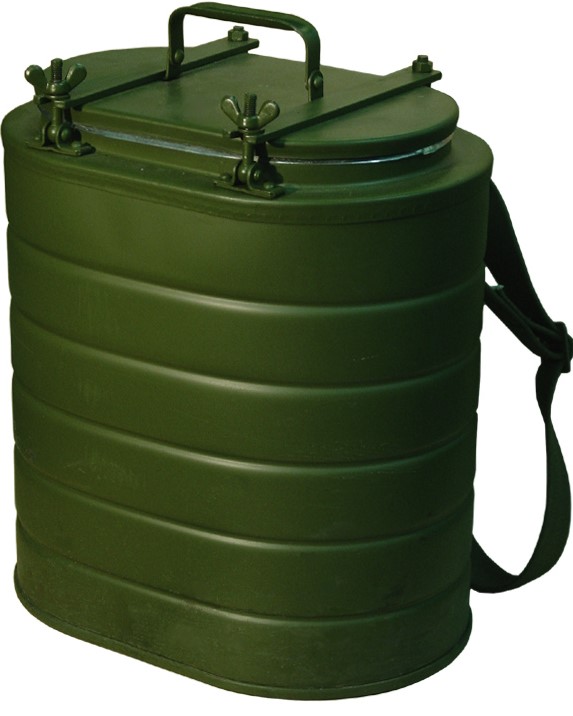 Армейский термос ЛЗЭП используется в походно-полевых условиях. Модель оснащена прокладкой из пищевой резины и ручкой сверху. Герметично закрытый термос сохраняет тепло не менее 40 °C после 6 часов хранения (при первоначальной температуре блюда 90 °C).Материал корпуса, дна и верхней части крышки - углеродистая сталь, материал бачка и дна крышки - коррозионностойкая сталь.