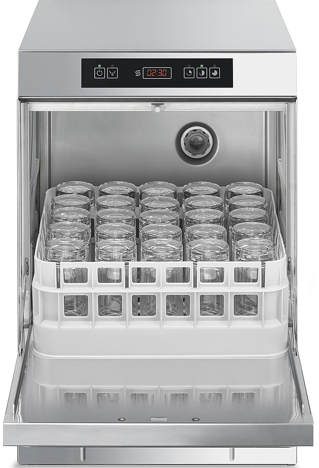 Стаканомоечная машина Smeg SPG403M серии Ecoline используется на предприятиях общественного питания, торговли и пищевых производствах для мойки тарелок, стаканов, чашек, кастрюль и столовых приборов. Модель оснащена электронным управлением, 5-ти ступенчатой системой фильтрации, счетчиком циклов и регулируемыми ножками. Материал корпуса и бака - высококачественная нержавеющая сталь AISI 304, материал задней панели - оцинкованная сталь, материал распылителей - пластик и нержавеющая сталь.