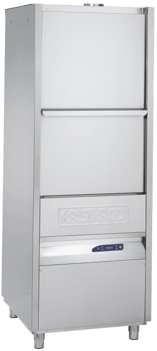 Котломоечная машина Aristarco AU 55.80 E PRS + DP серии AU используется на предприятиях общественного питания, торговли и пищевых производствах для мойки больших кастрюль, гастроемкостей, подносов и другой крупной посуды. Модель оснащена электромеханическим управлением, фронтальной погрузкой и регулируемыми ножками. Материал бойлера и ванны - высококачественная нержавеющая сталь AISI 316, материал корпуса - нержавеющая сталь AISI 304.