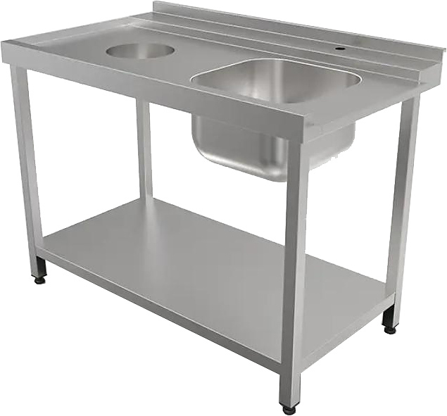 Входной стол Кобор СПМ/4-120/70/П используется на предприятиях общественного питания, торговли, в гостиничном бизнесе и других сферах для комплектации барных стоек и размещения посудомоечной машины. Стол оснащен отверстием под смеситель, отверстием для сбора отходов, полкой и бортом. Материал каркаса - труба из нержавеющей стали (40x40 мм), материал столешницы - нержавеющая сталь AISI 430.