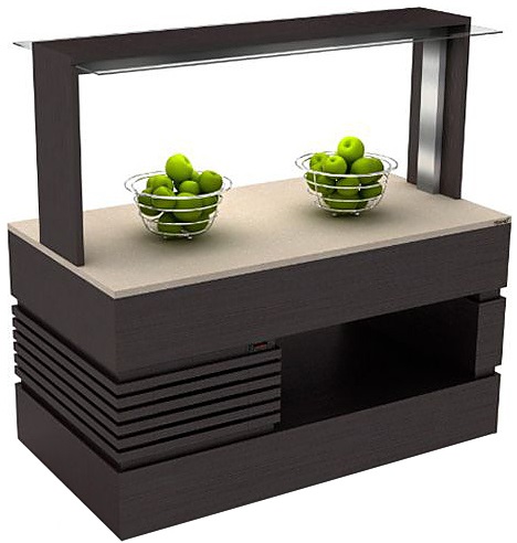 Техно-ТТ БН-112/1616 используется на предприятиях общественного питания и торговли для выкладки, хранения и раздачи продуктов. Каркас - оцинкованная сталь, фасад выполнен из шпона и МДФ, столешница изготовлена из искусственного камня. В модели предусмотрена ниша.