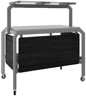 Нейтральный стол Кобор AN150 используется для демонстрационной подачи, кратковременного хранения и раздачи готовых блюд и напитков в составе линий раздачи или самообслуживания на предприятиях общественного питания, торговли и пищевых производствах. Модель оснащена открытой полкой, сплошной столешницей, полкой надстройкой со стеклом, и колесами, 2 из которых с тормозами. Материал сварного каркаса - окрашенная сталь (профиль с сечением 60х30 мм), материал внешнего корпуса - ЛДСП, материал столешницы - камень.