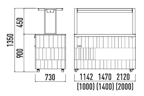 - Три вида охлаждения: статическое (обозначение RF - охлаждаемая ванна или PRF - охлаждаемая поверхность), вентилируемое (обозначение RF VT - охлаждаемая ванна) или охлаждаемая поверхность из кварцевого агломерата (обозначение QPRF)
