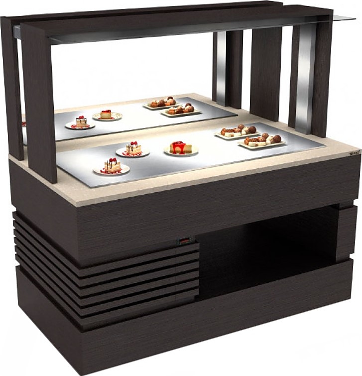 Буфет с морозильной столешницей Техно-ТТ БМС-113/1616А используется на предприятиях общественного питания и торговли для выкладки, кратковременного хранения и раздачи готовых блюд, десертов и мороженого. Закрытая пристенная полка и ниша. Буфет оснащен подсветкой. Поставляется в собранном виде. Материал каркаса - оцинкованная сталь, материал фасада - МДФ и шпон, материал столешницы - искусственный камень.