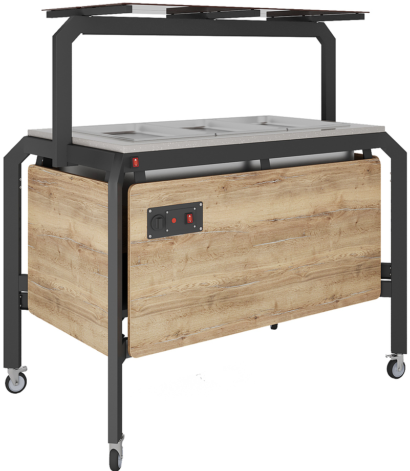 Салат-бар Enogrigo Кобор AO120 используется для демонстрационной подачи, кратковременного хранения и охлаждения салатов и холодных закусок в составе линий раздачи или самообслуживания на предприятиях общественного питания, торговли и пищевых производствах. Модель оснащена механическим терморегулятором, открытой полкой, полкой надстройкой со стеклом, и колесами, 2 из которых с тормозами. Материал сварного каркаса - окрашенная сталь (профиль с сечением 60х30 мм), материал внешнего корпуса - ЛДСП, материал столешницы - искусственный камень.