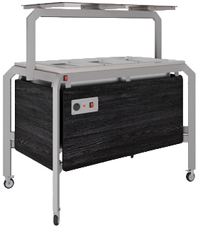 Салат-бар Enogrigo Кобор AO120 используется для демонстрационной подачи, кратковременного хранения и охлаждения салатов и холодных закусок в составе линий раздачи или самообслуживания на предприятиях общественного питания, торговли и пищевых производствах. Модель оснащена механическим терморегулятором, открытой полкой, полкой надстройкой со стеклом, и колесами, 2 из которых с тормозами. Материал сварного каркаса - окрашенная сталь (профиль с сечением 60х30 мм), материал внешнего корпуса - ЛДСП, материал столешницы - искусственный камень.