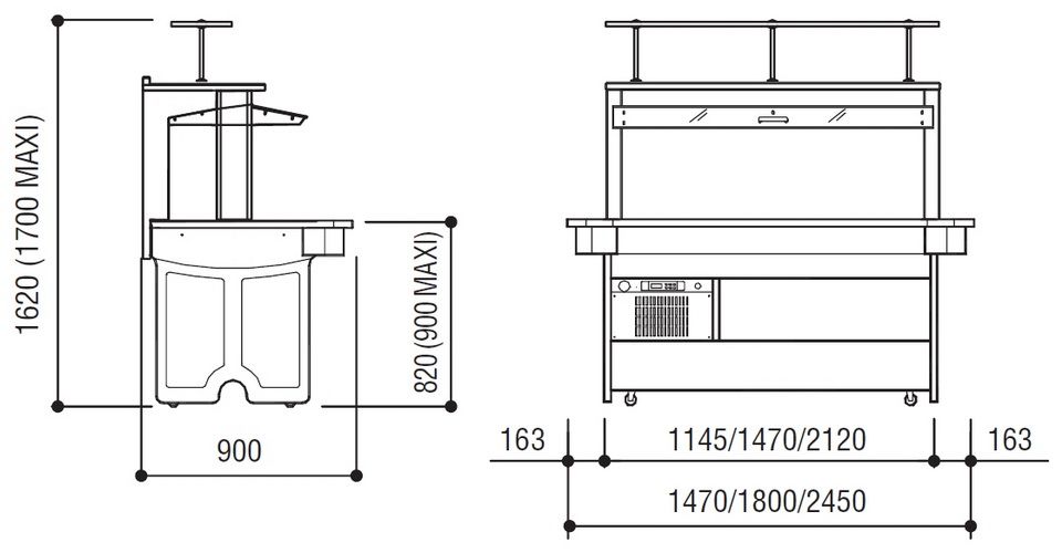 Зона выкладки расположена на оптимальной для клиента высоте. Для большего комфорта по периметру расположена небольшая столешница, на которую гость может поставить тарелку, пока он занят выбором блюда или составлением салата – в случае, если на выбор предложены отдельные ингредиенты.