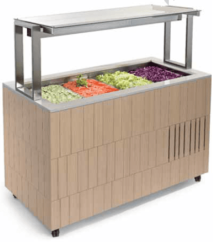 - Ванны из нержавеющей стали AISI 304 или поверхности с подогревом/охлаждением из агломерата Quarzo