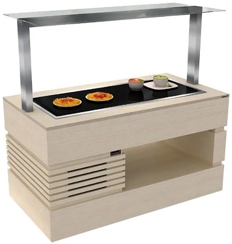 Техно-ТТ БПС-211/1616 используется на предприятиях общественного питания и торговли для выкладки, подогрева и раздачи горячих блюд. Каркас - оцинкованная сталь, фасад выполнен из шпона и МДФ, столешница изготовлена из искусственного камня. В модели предусмотрена открытая полка с подсветкой и ниша.