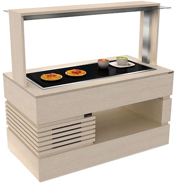 Буфет с подогреваемой столешницей Техно-ТТ БПС-202/966 используется на предприятиях общественного питания и торговли для выкладки, подогрева и раздачи горячих блюд. Каркас - оцинкованная сталь, фасад выполнен из шпона и МДФ, столешница изготовлена из искусственного камня. В модели предусмотрена закрытая полка с подсветкой.