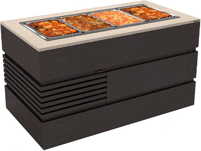 Буфет с мармитом вторых блюд Техно-ТТ БМВ-110/1286 используется на предприятиях общественного питания и торговли для выкладки, хранения и раздачи продуктов. Каркас - оцинкованная сталь, фасад выполнен из шпона и МДФ, столешница изготовлена из искусственного камня. В модели предусмотрена ниша.