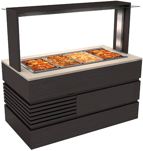 Буфет с мармитом вторых блюд Техно-ТТ БМВ-122/1286 используется на предприятиях общественного питания и торговли для выкладки, хранения и раздачи продуктов. Каркас - оцинкованная сталь, фасад выполнен из шпона и МДФ, столешница изготовлена из искусственного камня. В модели предусмотрен ящик.