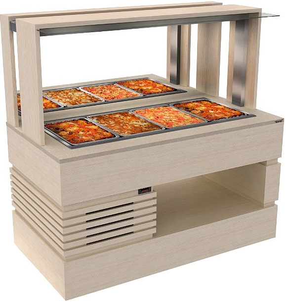 Техно-ТТ БМВ-203/966 используется на предприятиях общественного питания и торговли для выкладки, хранения и раздачи продуктов. Каркас - оцинкованная сталь, фасад выполнен из шпона и МДФ, столешница изготовлена из искусственного камня. В модели предусмотрена закрытая полка.