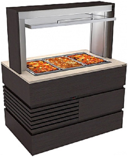Буфет с мармитом вторых блюд Техно-ТТ БМВ-114/1286 используется на предприятиях общественного питания и торговли для выкладки, хранения и раздачи продуктов. Каркас - оцинкованная сталь, фасад выполнен из шпона и МДФ, столешница изготовлена из искусственного камня. В модели предусмотрена ниша.