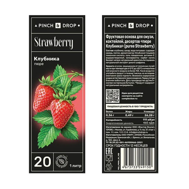 Фруктовое пюре «Клубника» Pinch&Drop используется для приготовления различных напитков и десертов и сервировки блюд в кафе, ресторанах, барах и на других предприятиях общественного питания, торговли и пищевых производствах. Один из самых востребованных вкусов – клубника. Этот продукт обладает густой сиропообразной текстурой и ярким ягодным вкусом, который не затмевается сладостью сахара. Он имеет привлекательный красный оттенок и относительно низкую калорийность.