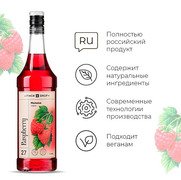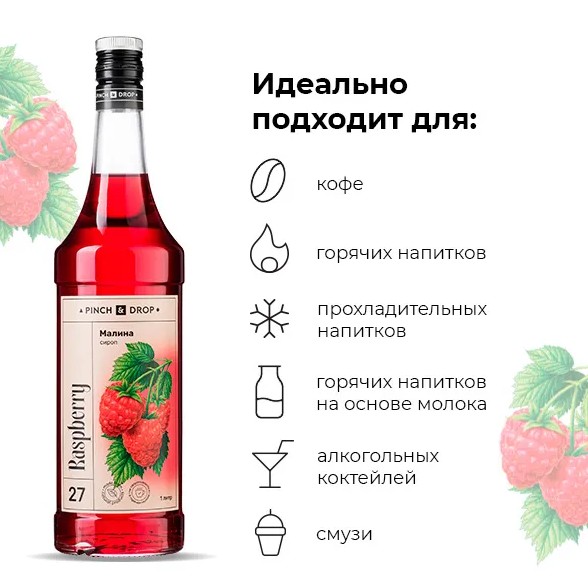 Сироп «Малина» Pinch&Drop используется для приготовления коктейлей, безалкогольных напитков, десертов, выпечки и добавления в кофе и стал незаменимым ингредиентом для кофеен, баров и ресторанов. Сироп «Малина» — это удивительное сочетание сладости и свежести малинового варенья. Благодаря использованию натуральных ингредиентов, вкус и аромат ягоды раскрываются в полном объеме. Этот сироп обогащает любое блюдо, придавая ему яркость и глубину.