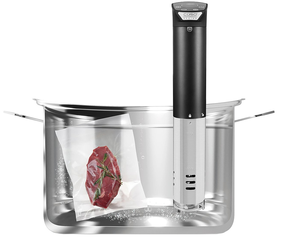 Аппарат Sous Vide CASO SV 1200 Smart используется на предприятиях общественного питания, торговли, пищевых производствах и в домашних условиях для приготовления пищи в герметичных пакетах, погружённых в горячую воду при низких температурах, что помогает сохранить питательные вещества, витамины и минералы, а также обеспечивает яркий вкус мяса и овощей. Модель оснащена сенсорным управлением, таймером и световым индикатором. Материал корпуса - высококачественная нержавеющая сталь.
