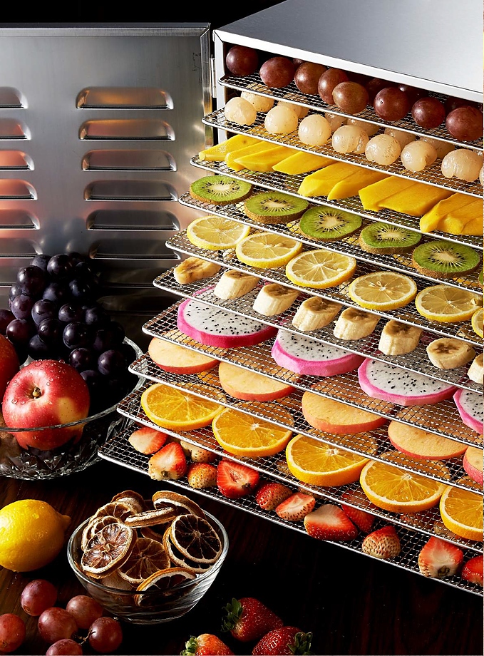 Дегидратор Kocateq DH FD 16 NW DIGITAL используется на предприятиях общественного питания, торговли, пищевых производствах и в домашних условиях для сушки овощей, грибов, фруктов и ягод. Модель оснащена электронным управлением, защитным термостатом, таймером, двумя вентиляторами и стеклянным окном. Материал корпуса - высококачественная нержавеющая сталь AISI 201, материал решетки - высококачественная нержавеющая сталь AISI 304.