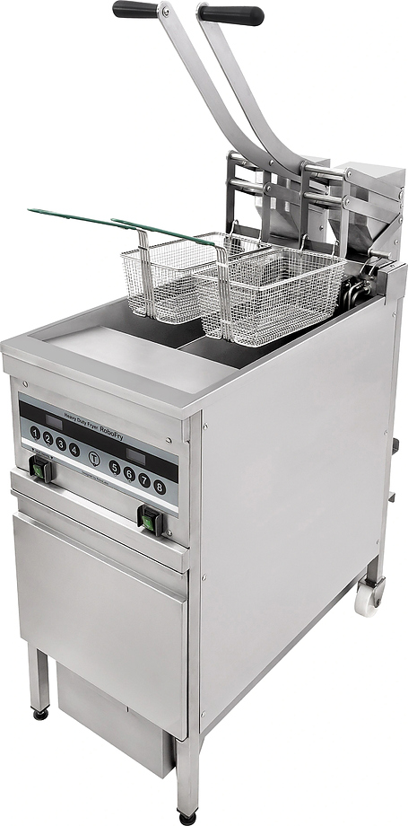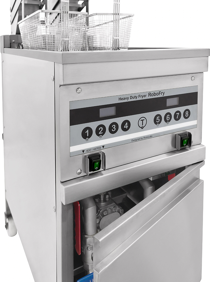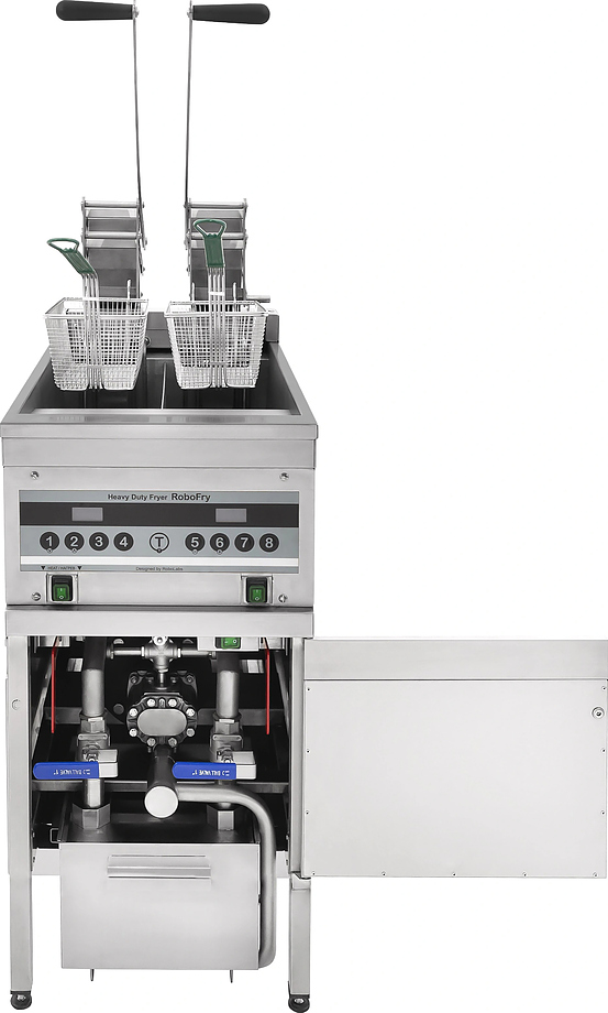 Фритюрница RoboLabs RoboFry ARF2 предназначена для приготовления различных продуктов в большом количестве масла на предприятиях общественного питания и торговли. Модель оснащена электронным управлением, ручным механизмом поднятия ТЭНов и холодной зоной для сгоревших частичек продуктов. Конструкция изготовлена из нержавеющей стали AISI 430.