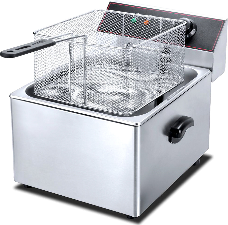 Фритюрница Hualian HEF-8L используется на предприятиях общественного питания, торговли и пищевых производствах для приготовления блюд в большом количестве масла. Модель оснащена механическим управлением, терморегулятором, автоматическим выключением и корзиной с ручкой и крючками. Материал корпуса и корзины - высококачественная нержавеющая сталь, материал ручки - термостойкий пластик.
