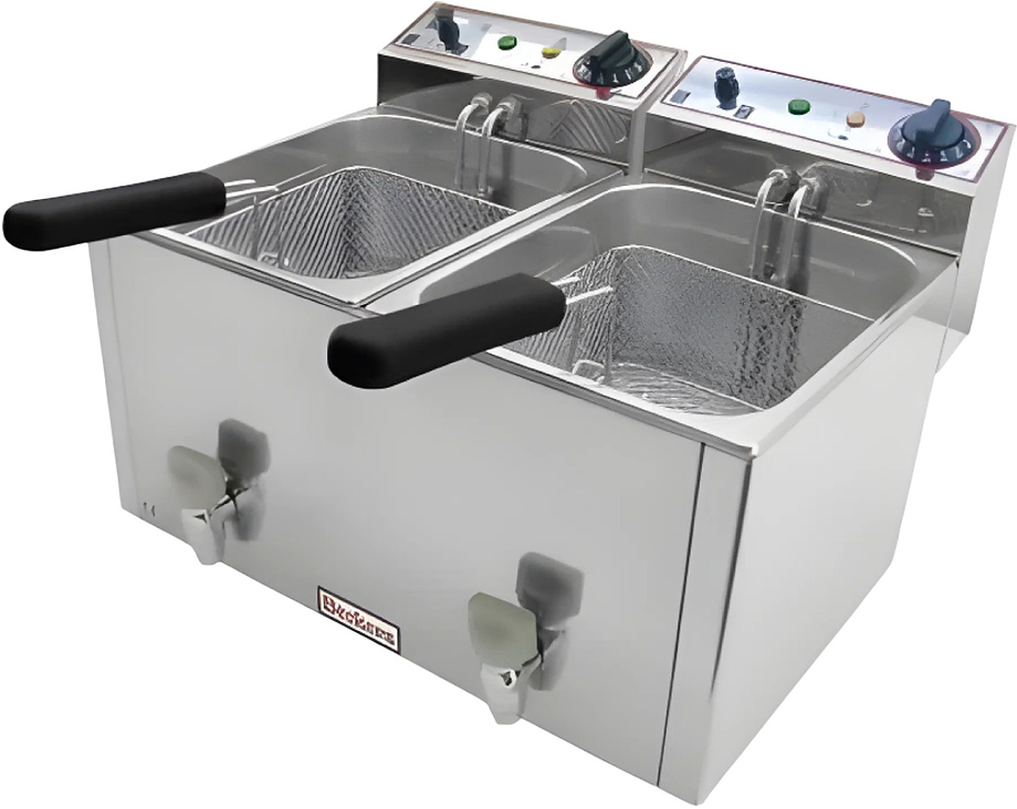 Фритюрница BECKERS FR 8+8 предназначена для приготовления различных продуктов в большом количестве масла на предприятиях общественного питания и торговли. Модель оснащена аварийными термостатами, холодной зоной и световыми индикаторами режимов работы. Корпус и ванна выполнены из нержавеющей стали, корзины - из хромированной проволоки, ручка - из термостойкого материала.