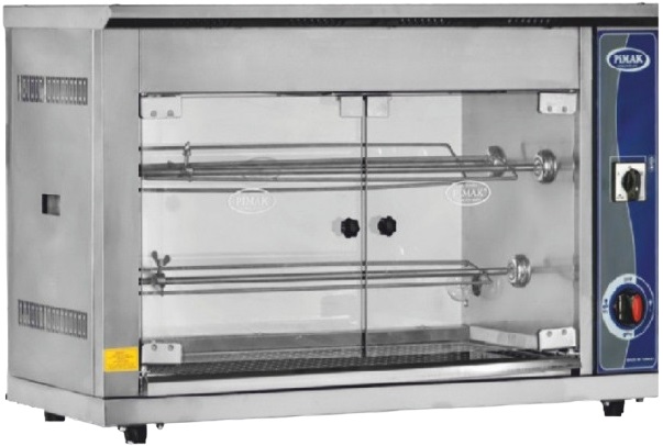 Гриль для кур Pimak M002-E используется на предприятиях общественного питания, торговли и пищевых производствах для приготовления тушек, куриных окорочков, грудок и других продуктов. Материал корпуса и шампуров - высококачественная нержавеющая сталь.