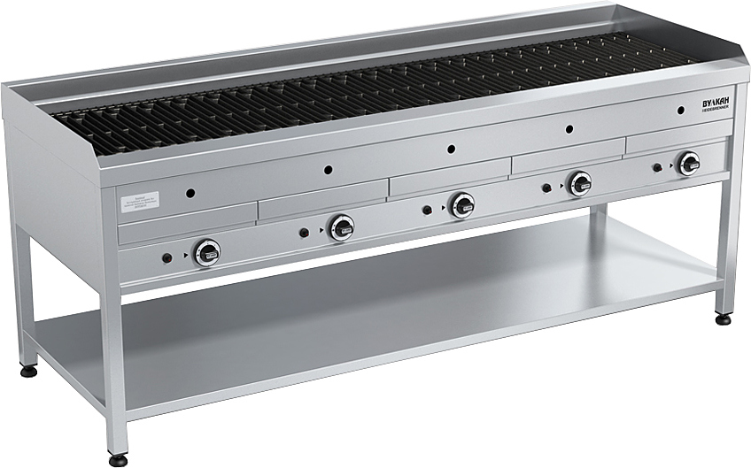 Газовый гриль Вулкан BPD 05K «Фусса» предназначен для жарки различных продуктов на предприятиях общественного питания и торговли. В процессе приготовления блюда получают такой же вкус, аромат и внешний вид, словно их готовили на открытом огне. Модель оснащена газ-контролем, пьезоподжигом, запальной горелкой и защитным бортом от разбрызгивания.