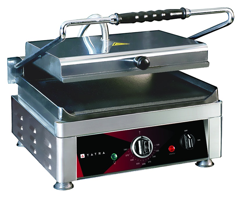 Прижимной гриль Tatra TCG 3627 SS предназначен для жарки мяса, птицы, рыбы, овощей и быстрого разогрева полуфабрикатов на предприятиях общественного питания и торговли. Модель оснащена электромеханической панелью управления с терморегулятором и индикаторами питания и нагрева и емкостью для сбора жира. Корпус выполнен из нержавеющей стали.