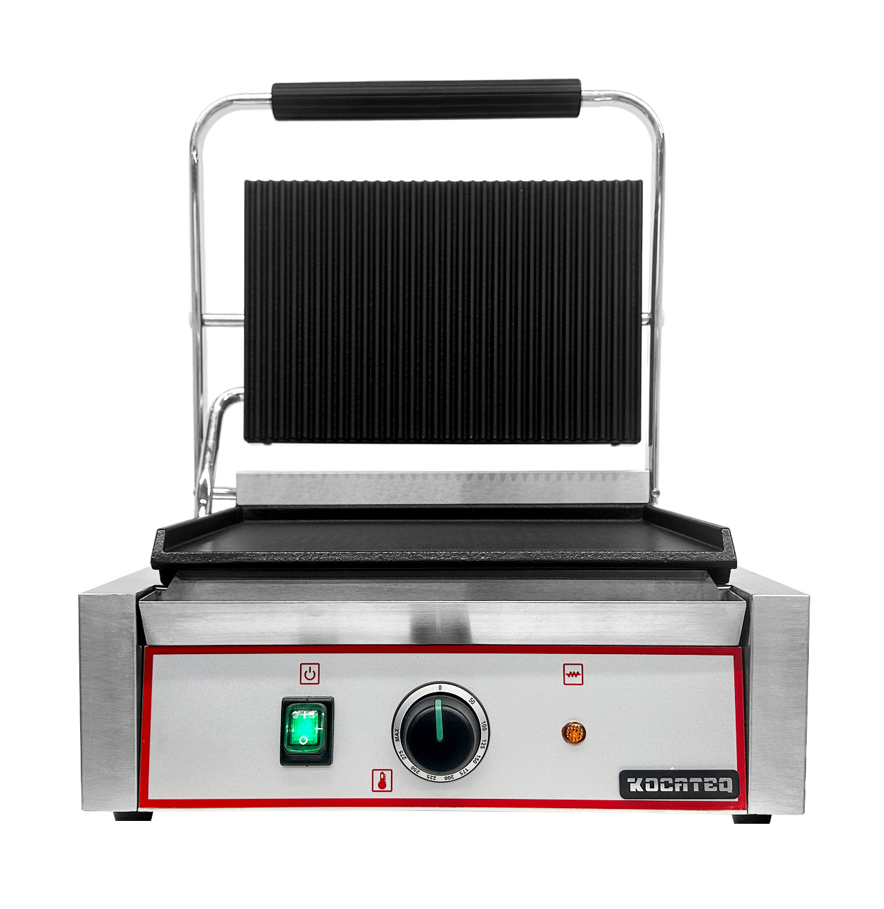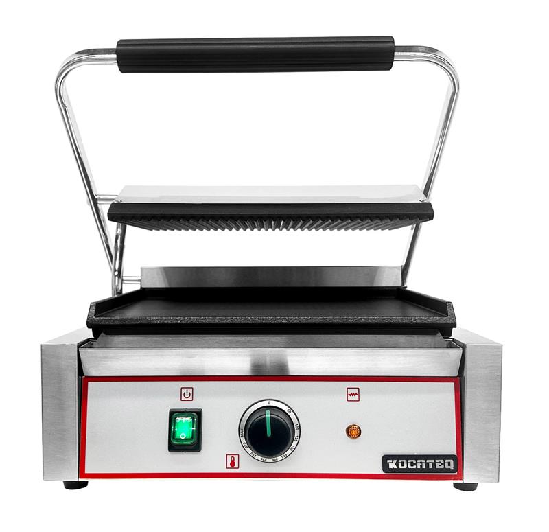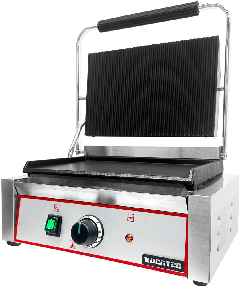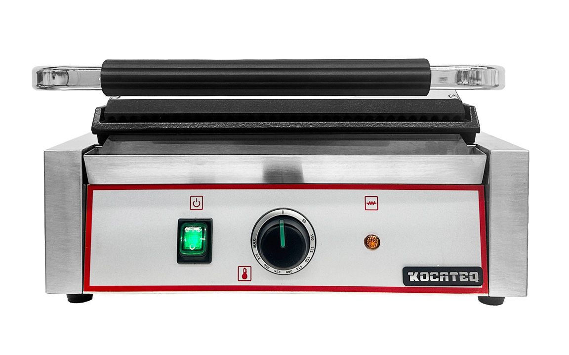 Прижимной гриль Kocateq GH 811EC GL используется на предприятиях общественного питания, торговли и пищевых производствах для жарки мяса, рыбы, овощей, приготовления гамбургеров, сэндвичей, стейков и прочих блюд. Механическая панель управления, регулировка температуры при помощи термостата. Возможно приготовление омлетов, котлет, свинины. Материал рабочих поверхностей - литая сталь с антипригарным покрытием, материал корпуса - нержавеющая сталь AISI 201 (толщина 0.7 мм), материал ножек - пластик.