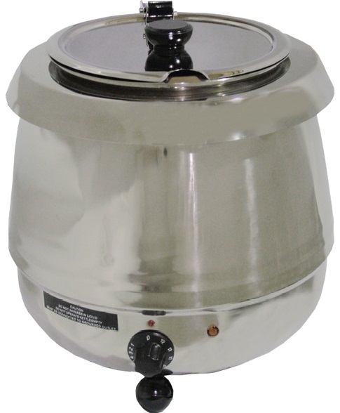 Модель оснащена термостатом и откидной съемной крышкой с фланцем. Корпус и вставка выполнены из нержавеющей стали.