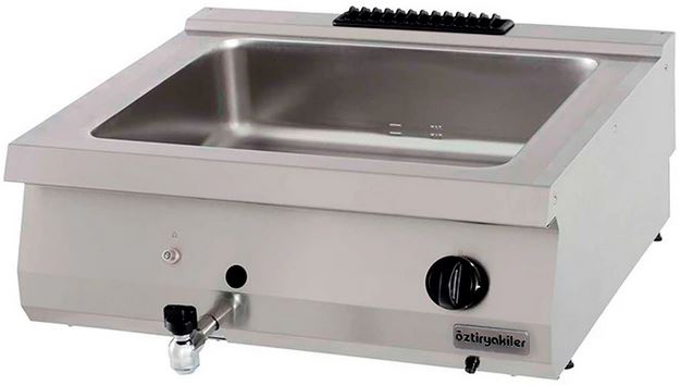 Мармит OZTI OBG 8070 серии 900 используется на предприятиях общественного питания, торговли и пищевых производствах для поддержания постоянной температуры готовых блюд. Модель оснащена механическим управлением, терморегулятором, краном для слива и ручной подачей воды. Материал корпуса, конфорки и рабочей поверхности - высококачественная нержавеющая сталь.