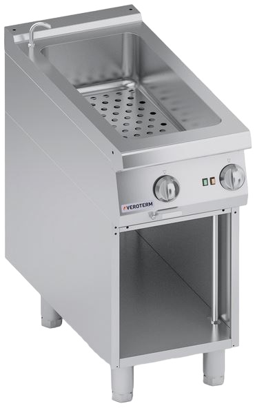 Мармит Veroterm VT4BMEP05VV серии 900 используется на предприятиях общественного питания, торговли и пищевых производствах для поддержания постоянной температуры готовых блюд. Модель оснащена механическим управлением, подставкой и регуляторами температуры. Материал изделия - высококачественная нержавеющая сталь AISI 430 (толщина 1 мм).