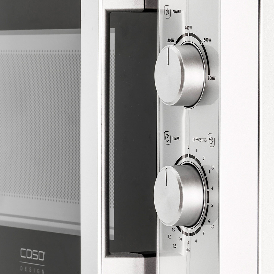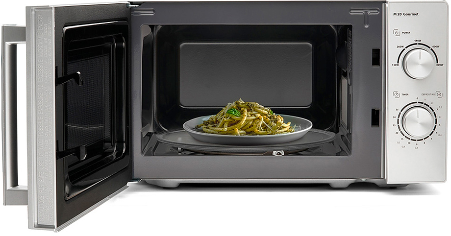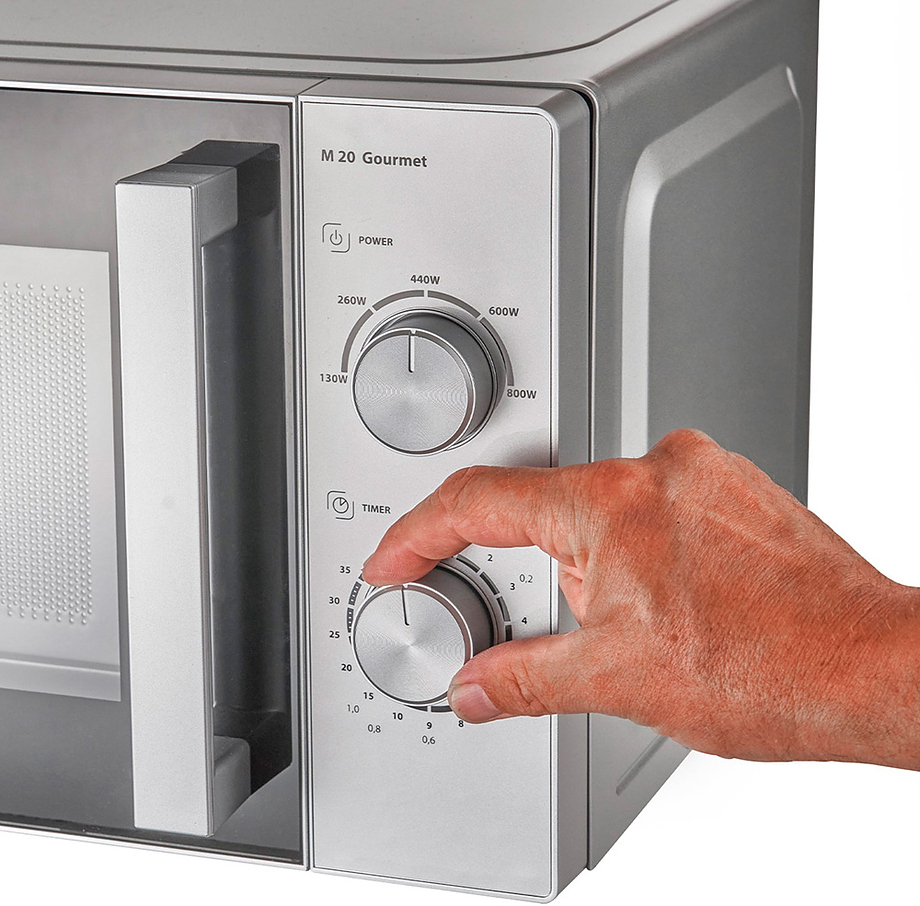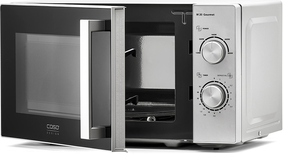 Микроволновая печь CASO M 20 Gourmet используется для приготовления блюд, разогрева и разморозки продуктов и полуфабрикатов на предприятиях общественного питания, торговли, пищевых производствах и в домашних условиях. Модель оснащена механическим управлением, таймером с сигналом окончания, часами, белой светодиодной подсветкой камеры, поворотной тарелкой и вертикальной ручкой. Материал корпуса - высококачественная нержавеющая сталь, материал тарелки - стекло.