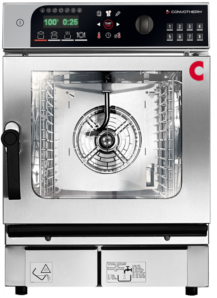 Пароконвектомат Convotherm Mini Standard 6.06 mobile предназначен для обжаривания, приготовления на пару, бланширования, запекания и других видов тепловой обработки продуктов на предприятиях общественного питания. Цифровой дисплей, возможность автономной работы без подключения к водопроводу и канализации, вентилятор с уменьшенной скоростью вращения и автореверсом.