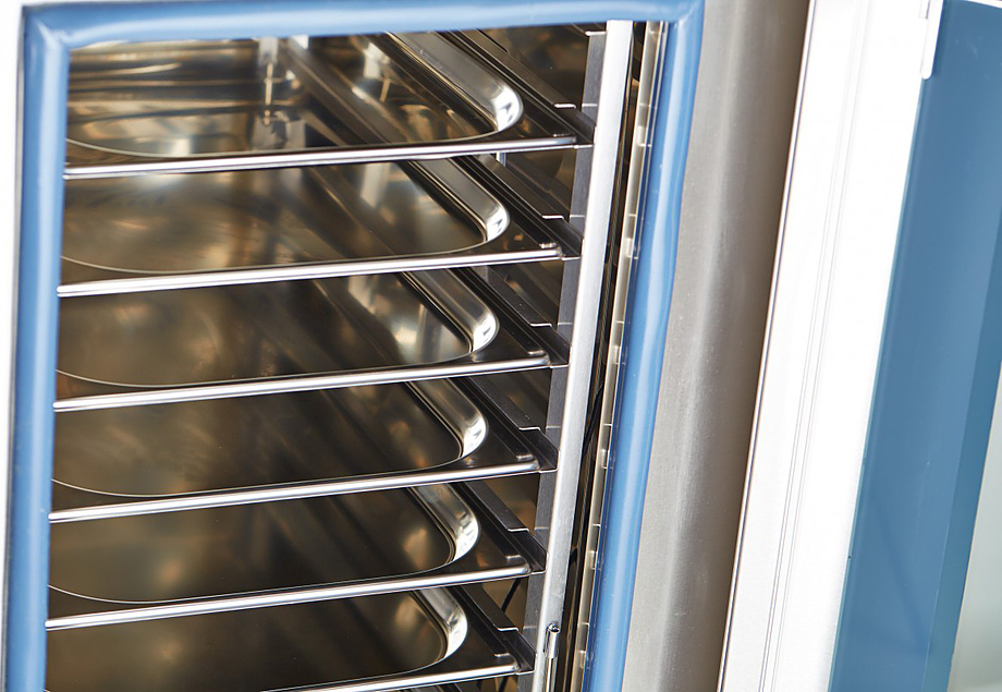 • Двухходовой механизм открывания двери для защиты персонала от горячего пара