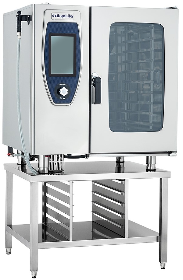 Пароконвектомат OZTI COMBI OKFE 101 C используется на предприятиях общественного питания, торговли и пищевых производствах для приготовлен различных блюд и кондитерских и хлебобулочных изделий. Модель оснащена электромеханическим управлением, термощупом и галогенной подсветкой. Материал камеры - высококачественная нержавеющая сталь AISI 304, материал корпуса - высококачественная нержавеющая сталь AISI 430.