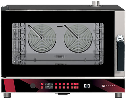 Пароконвектомат Tatra TBI 04 DC.5V предназначен для выпечки хлебобулочных и кондитерских изделий на предприятиях общественного питания, торговли и пищевых производствах. Модель оснащена электронным управлением с LCD экраном 2.4", 2 реверсивными вентиляторами, инжекторным пароувлажнением, автоматической мойкой, USB портом, подсветкой галогенной лампой и закругленными краями для легкой чистки. Материал камеры и корпуса - высококачественная нержавеющая сталь, материал дверцы - двойное жаропрочное стекло.