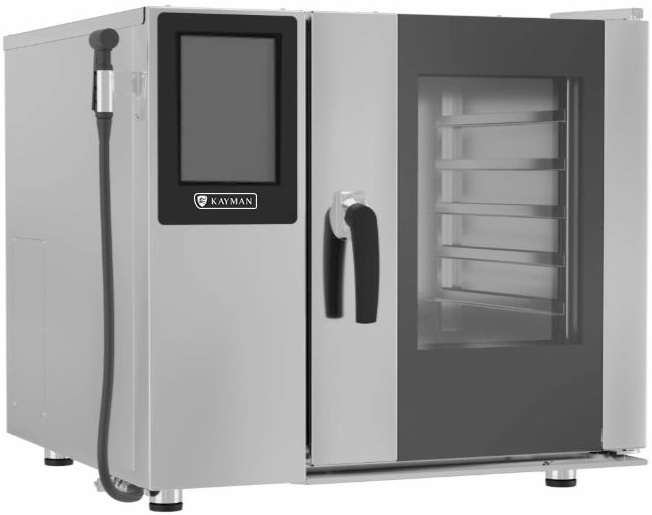 Пароконвектомат KAYMAN СУ-ШЕФ ПРО ПКЭ-6И-ПР предназначен для приготовления различных блюд на предприятиях общественного питания, торговли и пищевых производствах. Модель оснащена Touch Screen управлением, дисплеем 9.7", автоматической мойкой, таймером, душирующим устройством и подсветкой.. Материал изделия - высококачественная нержавеющая сталь, дверцы - тройное закаленное стекло.