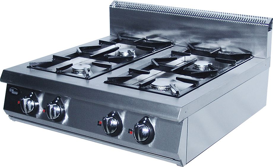Газовая плита KAYMAN ПГ-4-12 предназначена для приготовления приготовления первых, вторых и третьих блюд в наплитной посуде на предприятиях общественного питания и торговли. Модель оснащена системой "газ-контроль". Корпус выполнен из нержавеющей стали.