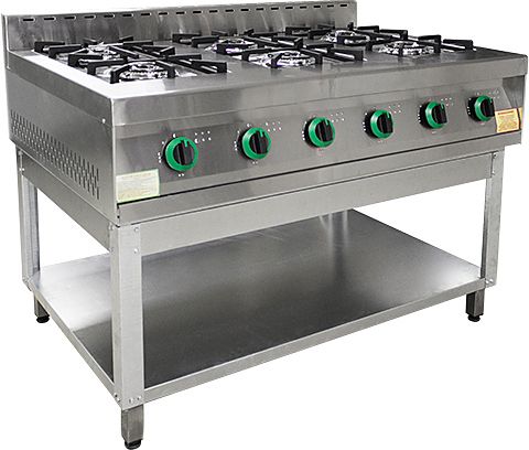 Газовая плита Пищевые Технологии ПГ-6-01 предназначена для приготовления первых, вторых и третьих блюд в наплитной посуде на предприятиях общественного питания и торговли. Модель оснащена газ-контролем, электроподжигом и регулируемыми по высоте ножками. Лицевая и верхняя части корпуса выполнены из нержавеющей стали, остальные части - из стали, покрытой порошковой краской.