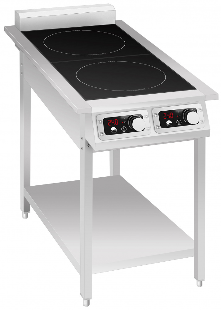 Индукционная плита INDOKOR IN3500-2PRO на подставке предназначена для приготовления и быстрого разогрева блюд на предприятиях общественного питания, торговли и производствах. Корпус плиты и лицевая панель выполнены из нержавеющей стали. Электромеханическая панель управления.